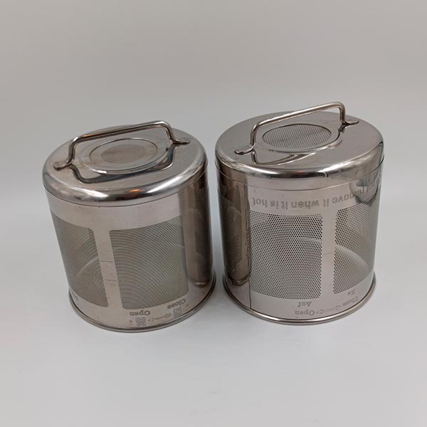 2 filtros de acero inoxidable con diferente tamiz que filtran más o menos para conseguir bebidas o cremas vegetales.